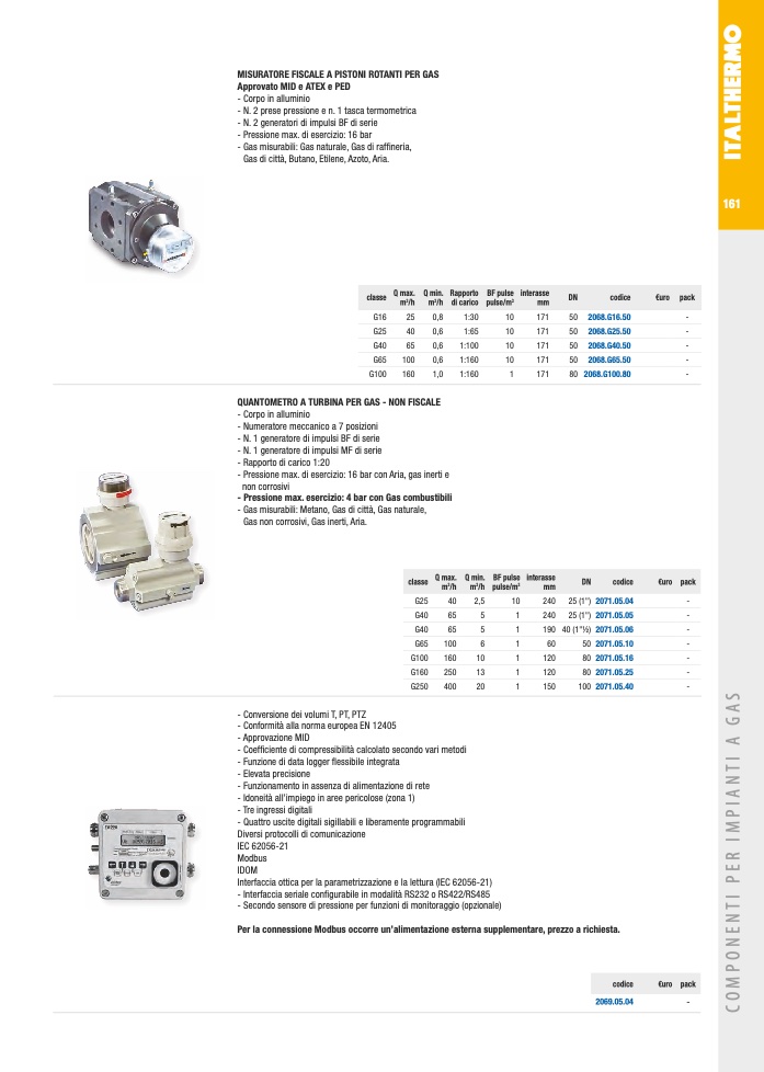- Gas misurabili: Gas naturale, Gas di raffineria,