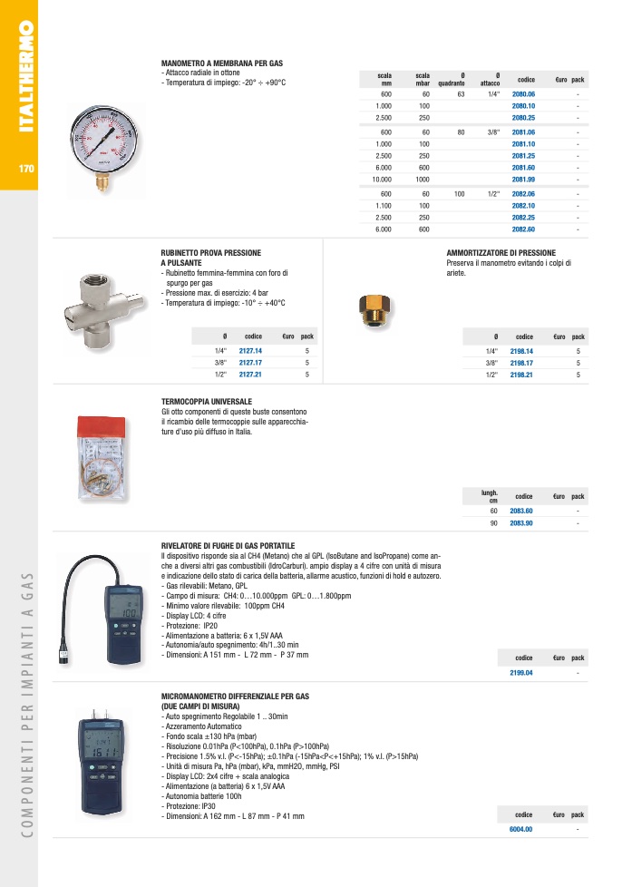 MICROMANOMETRO DIFFERENZIALE PER GAS