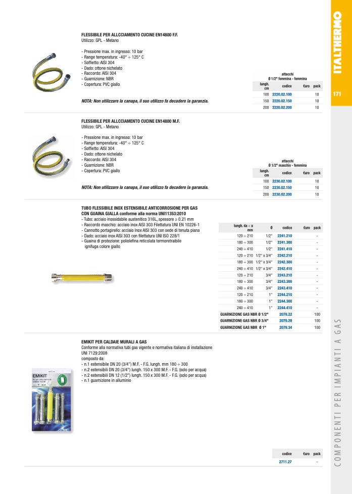 Conforme alla normativa tubi gas vigente e normativa italiana di installazione