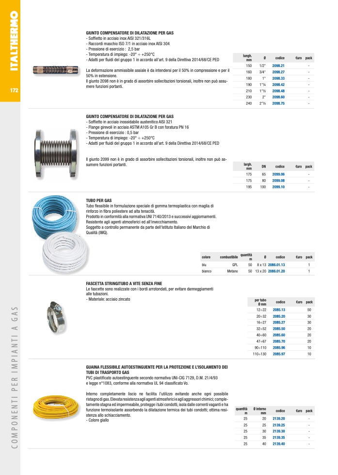 GIUNTO COMPENSATORE DI DILATAZIONE PER GAS