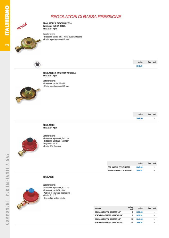 - Pressione uscita: 29/37 mbar Butano/Propano