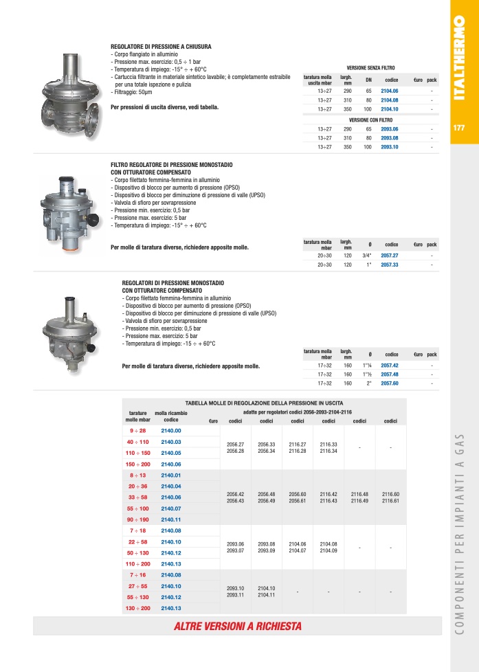 adatte per regolatori codici 2056-2093-2104-2116