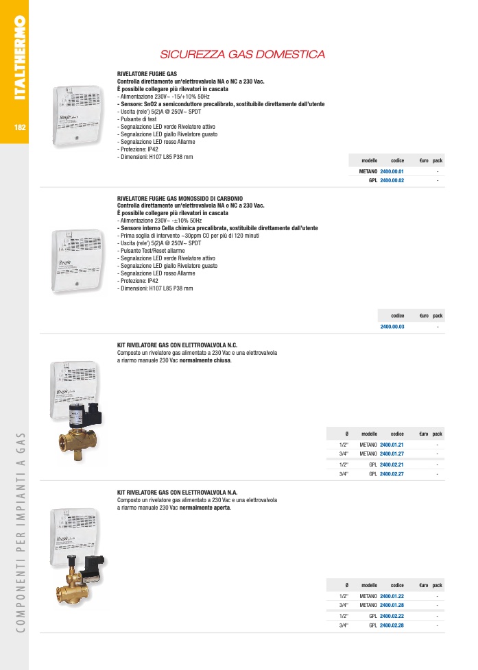 KIT RIVELATORE GAS CON ELETTROVALVOLA N.C.