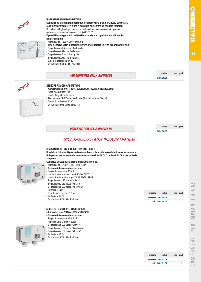 RIVELATORE DI FUGHE DI GAS CON DUE USCITE