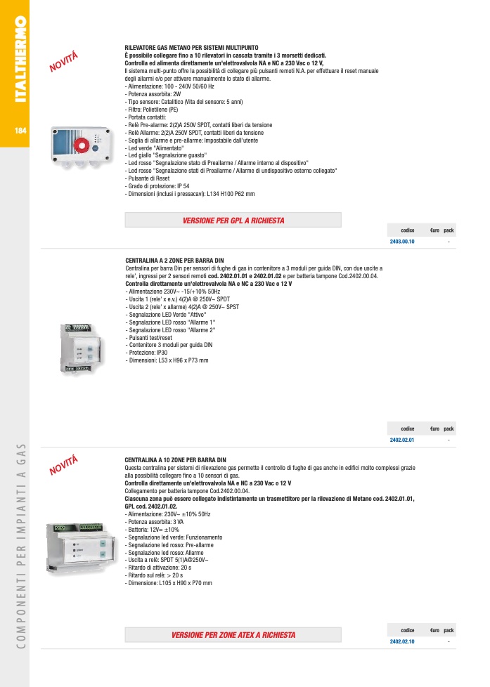Ciascuna zona può essere collegato indistintamente un trasmettitore per la rilevazione di Metano cod. 2402.01.01,