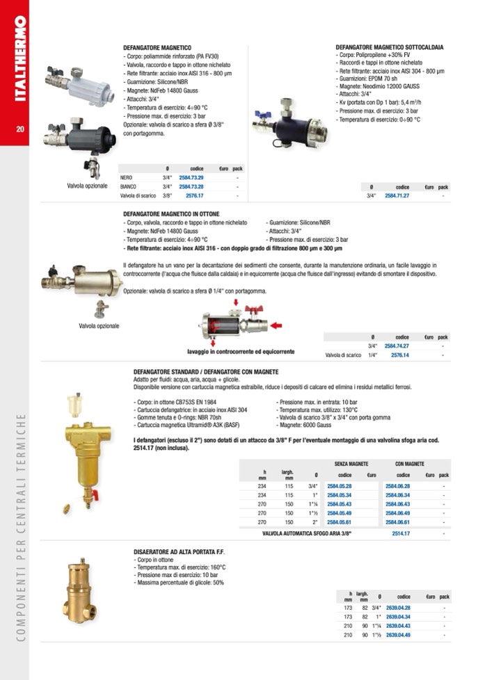 I defangatori (escluso il 2”) sono dotati di un attacco da 3/8” F per l’eventuale montaggio di una valvolina sfoga aria cod.