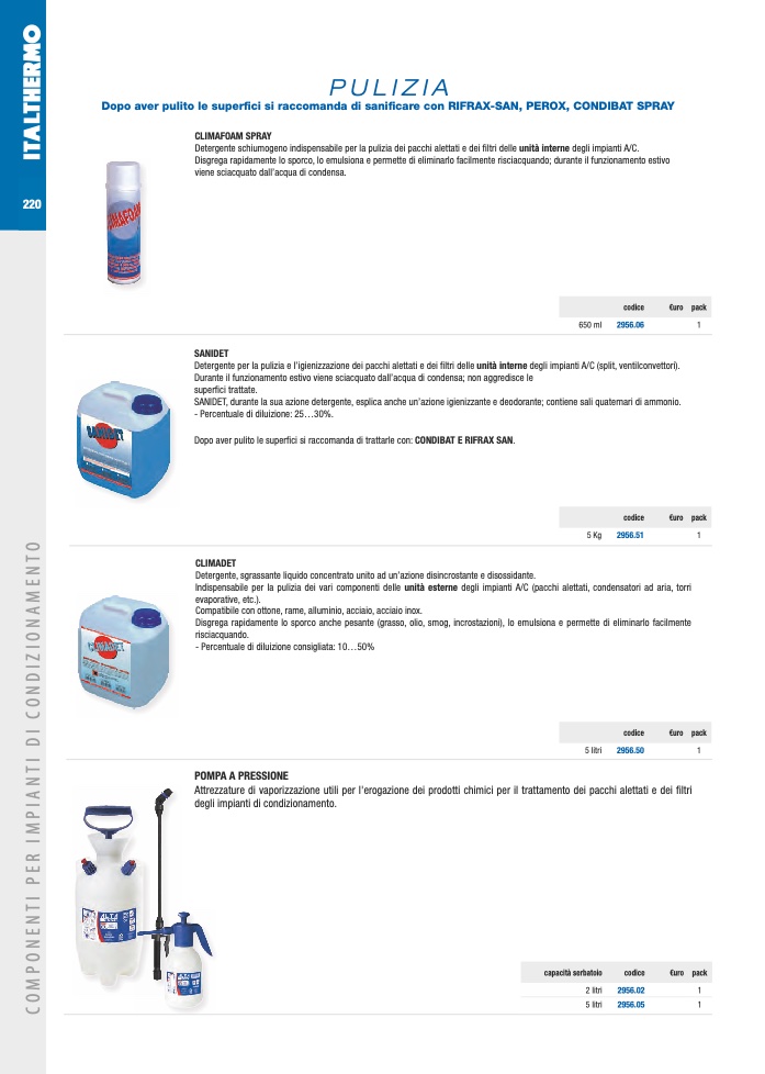 Detergente per la pulizia e l’igienizzazione dei pacchi alettati e dei filtri delle unità interne degli impianti A/C (split, ventilconvettori).
