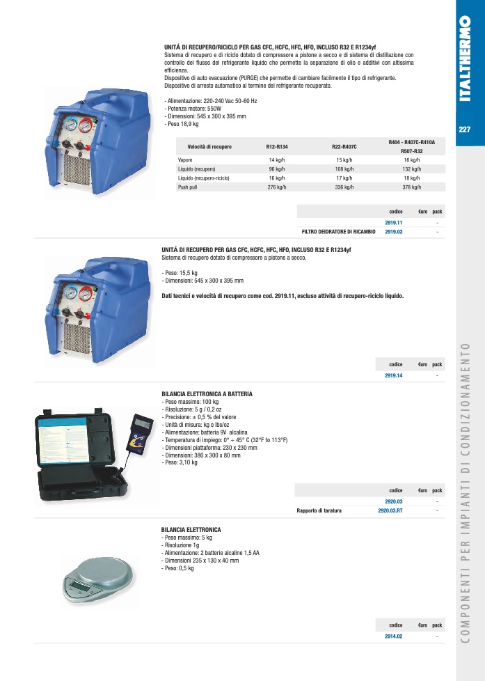 UNITÁ DI RECUPERO PER GAS CFC, HCFC, HFC, HFO, INCLUSO R32 E R1234yf