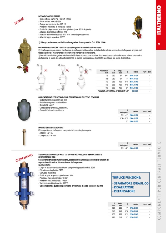 Separatore idraulico multifunzione, associa in un unico apparecchio le funzioni di: