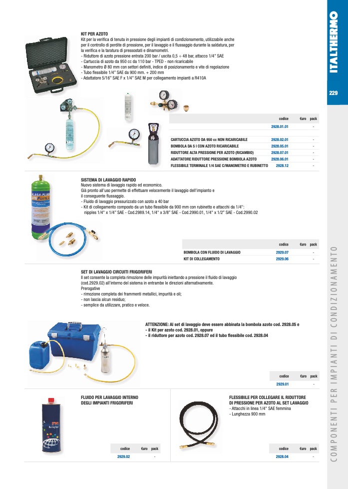 ATTENZIONE: Al set di lavaggio deve essere abbinata la bombola azoto cod. 2928.05 e