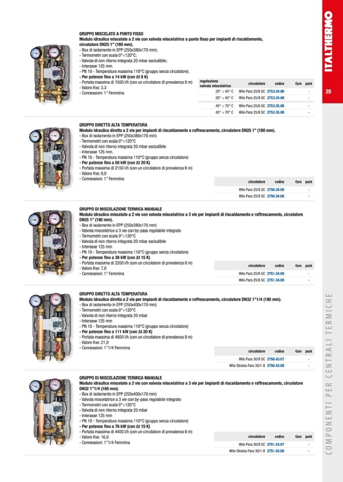 - PN 10 - Temperatura massima 110°C (gruppo senza circolatore)