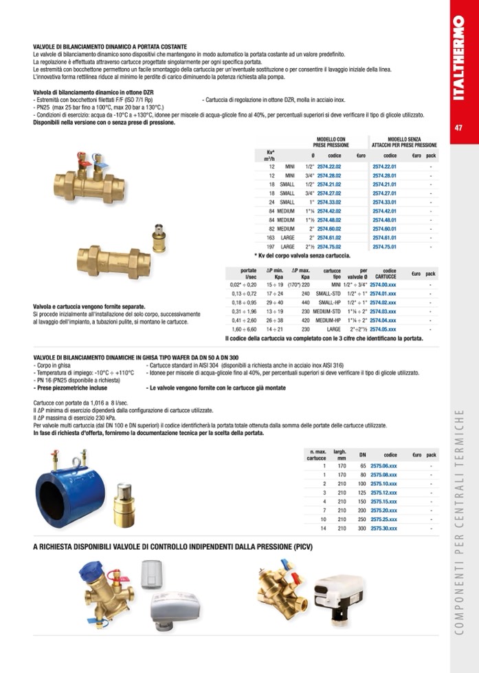 A RICHIESTA DISPONIBILI VALVOLE DI CONTROLLO INDIPENDENTI DALLA PRESSIONE (PICV)