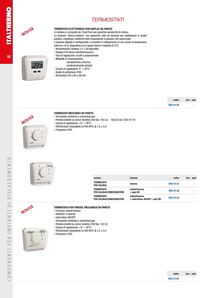 TERMOSTATI MECCANICI DA PARETE