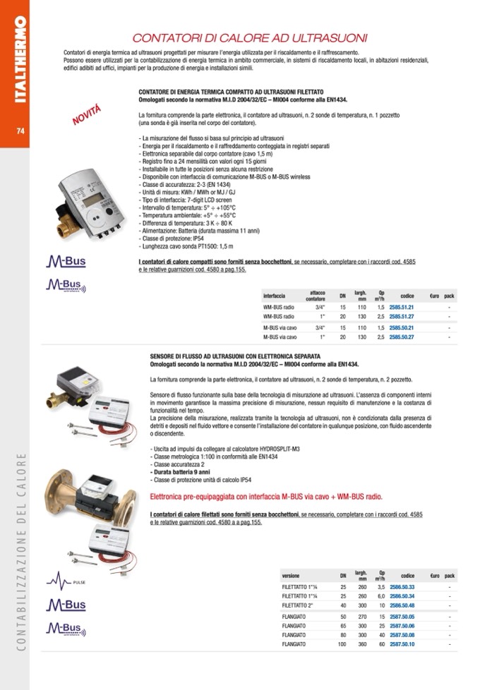 Omologati secondo la normativa M.I.D 2004/32/EC – MI004 conforme alla EN1434.