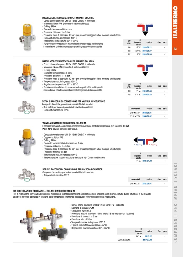 MISCELATORE TERMOSTATICO PER IMPIANTI SOLARI F.