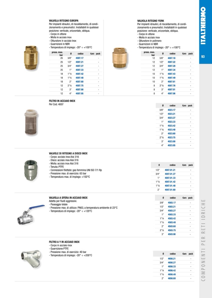 VALVOLA RITEGNO EUROPA