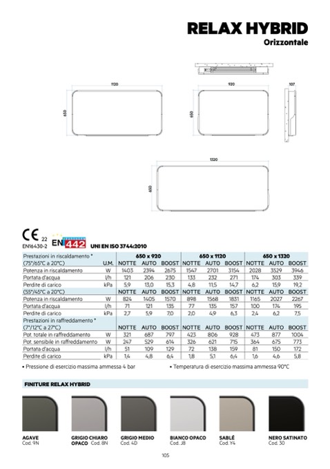• Temperatura di esercizio massima ammessa 90°C