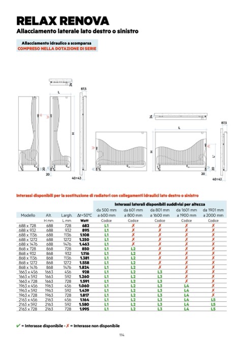 Interassi disponibili per la sostituzione di radiatori con collegamenti idraulici lato destro o sinistro