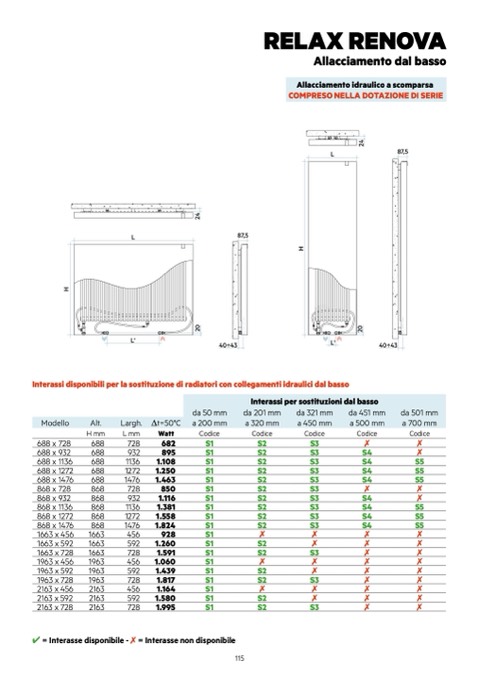 Interassi disponibili per la sostituzione di radiatori con collegamenti idraulici dal basso