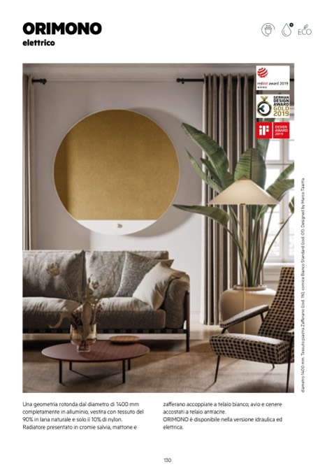 Radiatore presentato in cromie salvia, mattone e
