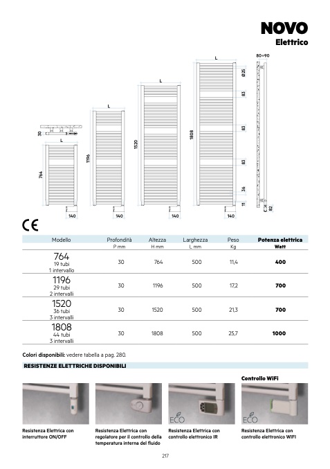 Colori disponibili: vedere tabella a pag. 280.