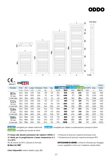 (*) Grazie alle elevate prestazioni dei radiatori ODDO, il