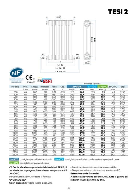 (*) Grazie alle elevate prestazioni dei radiatori TESI 2, il