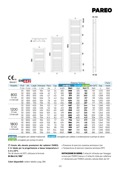 (*) Grazie alle elevate prestazioni dei radiatori PAREO,