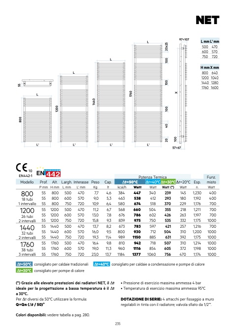 (*) Grazie alle elevate prestazioni dei radiatori NET, il ∆t