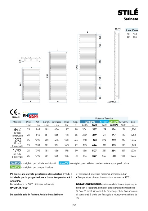 (*) Grazie alle elevate prestazioni dei radiatori STILÉ, il