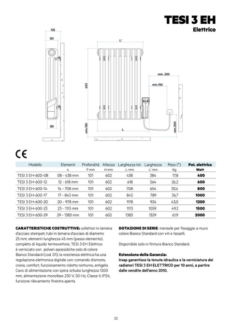 radiatori TESI 3 EH ELETTRICO per 10 anni, a partire