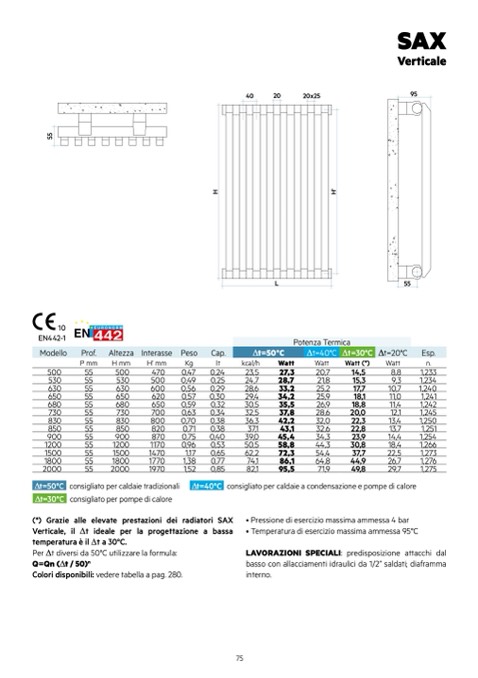 (*) Grazie alle elevate prestazioni dei radiatori SAX