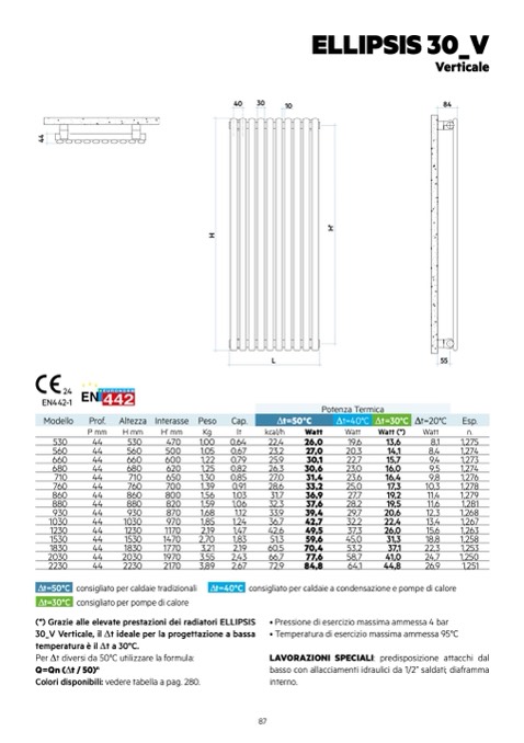 (*) Grazie alle elevate prestazioni dei radiatori ELLIPSIS