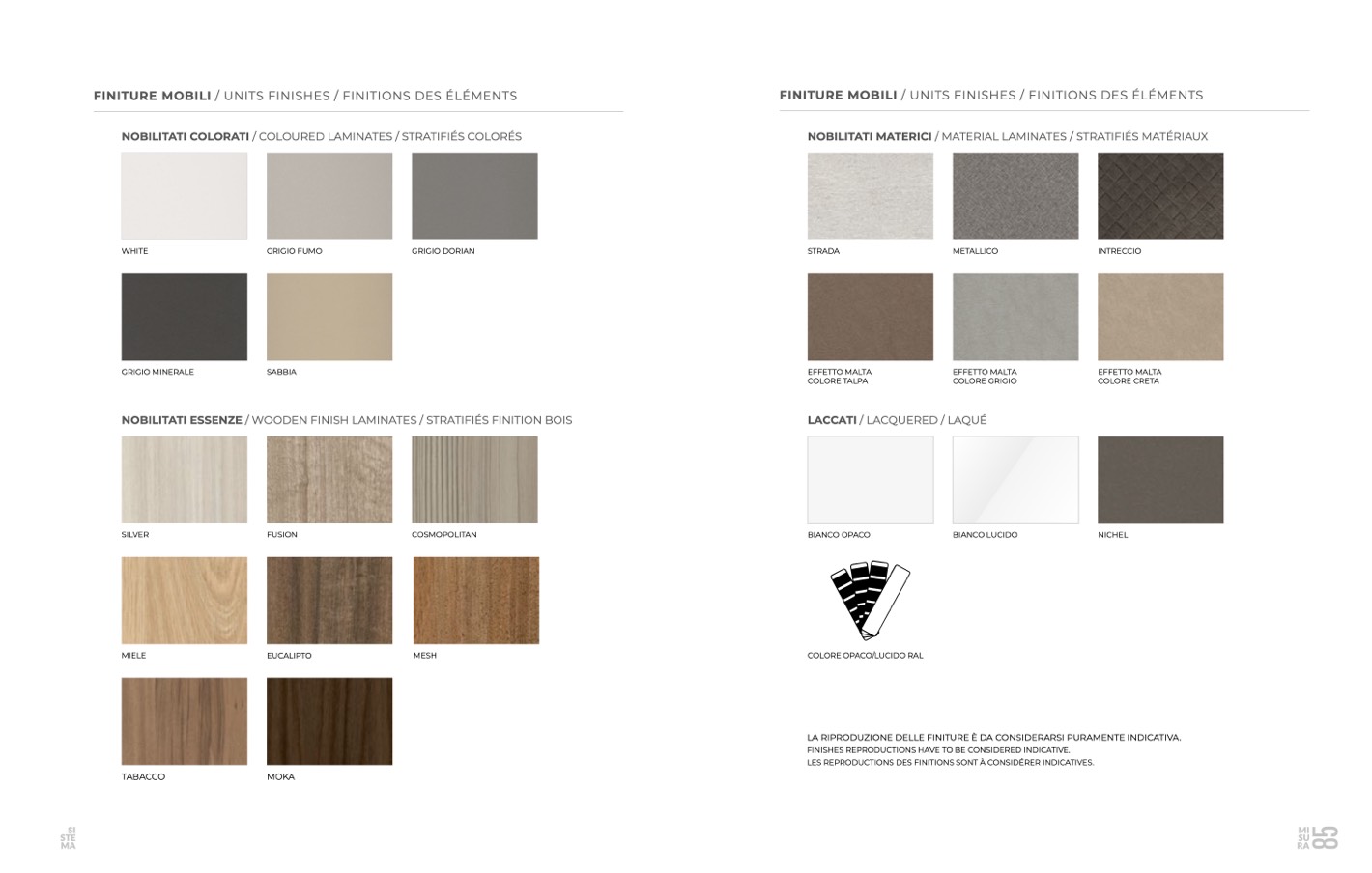 LA RIPRODUZIONE DELLE FINITURE È DA CONSIDERARSI PURAMENTE INDICATIVA.
