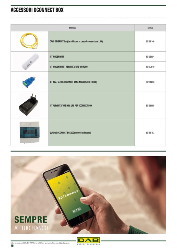 Listino riservato grossisti italia. DAB PUMPS si riserva il diritto di apportare modifiche senza obbligo di preavviso.