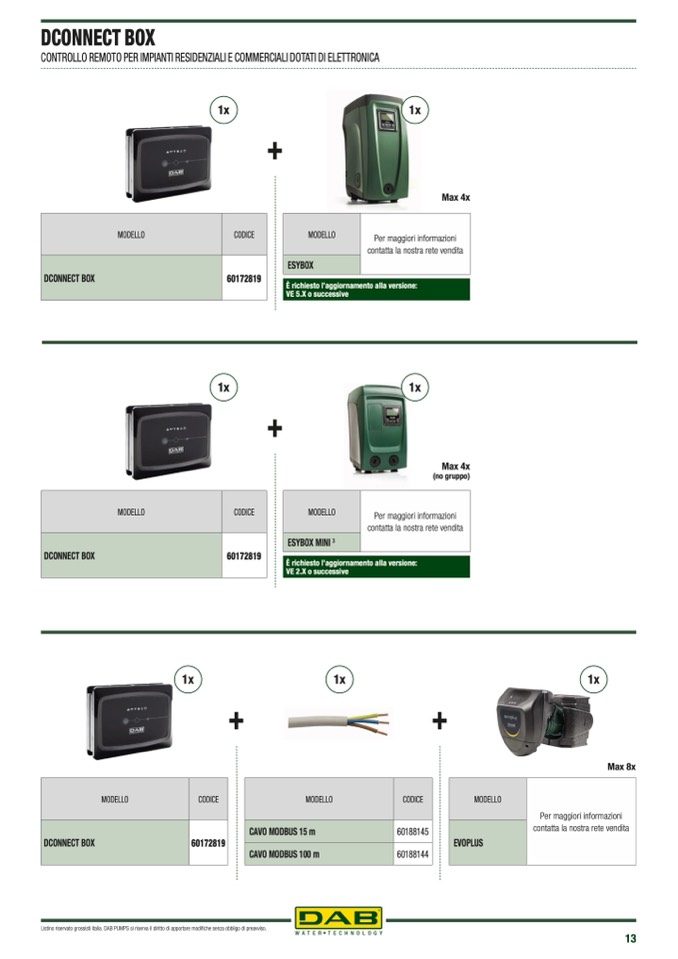 Listino riservato grossisti italia. DAB PUMPS si riserva il diritto di apportare modifiche senza obbligo di preavviso.