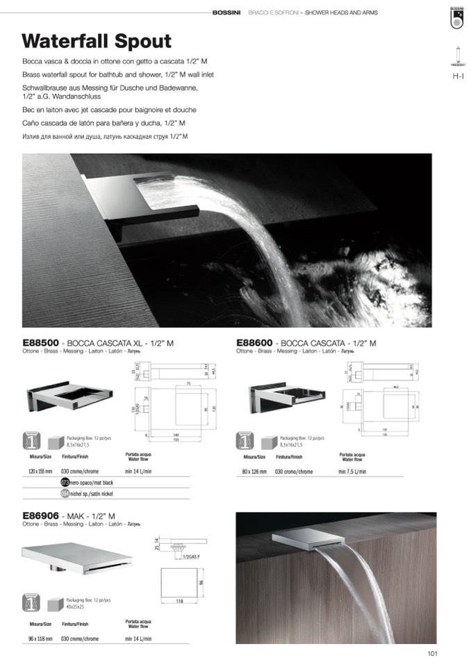 Bocca vasca & doccia in ottone con getto a cascata 1/2” M