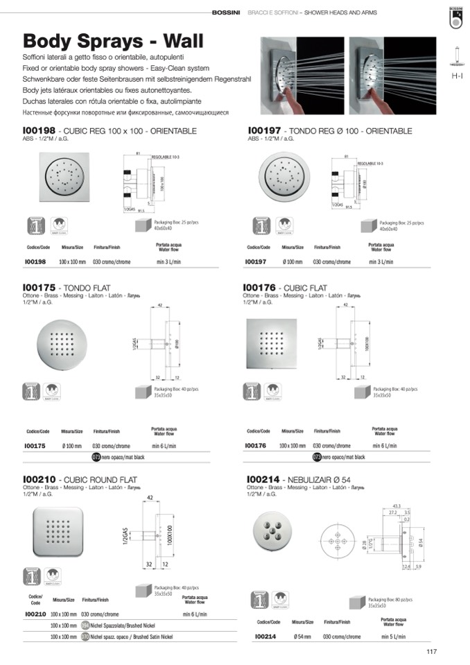 BOSSINI BRACCI E SOFFIONI – SHOWER HEADS AND ARMS