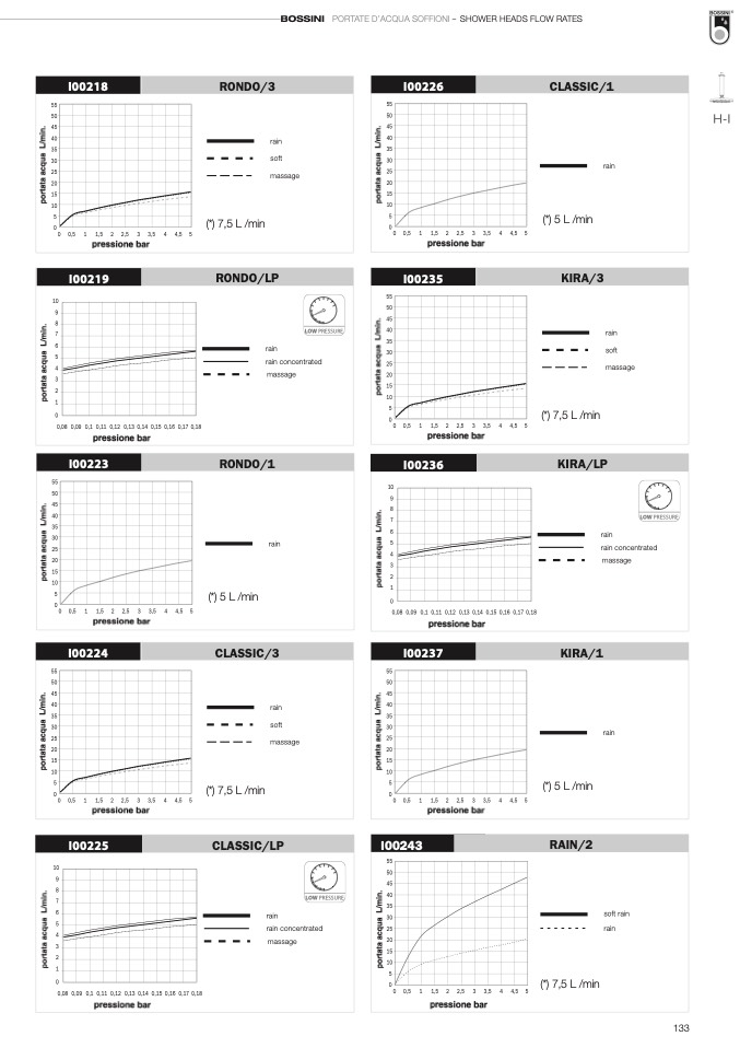 BOSSINI PORTATE D’ACQUA SOFFIONI – SHOWER HEADS FLOW RATES