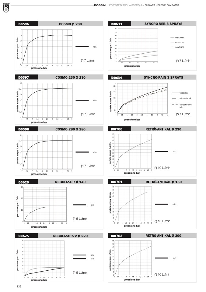 BOSSINI PORTATE D’ACQUA SOFFIONI – SHOWER HEADS FLOW RATES