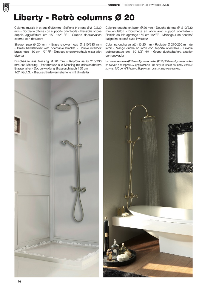 Colonna murale in ottone Ø 20 mm - Soffione in ottone Ø 210/230