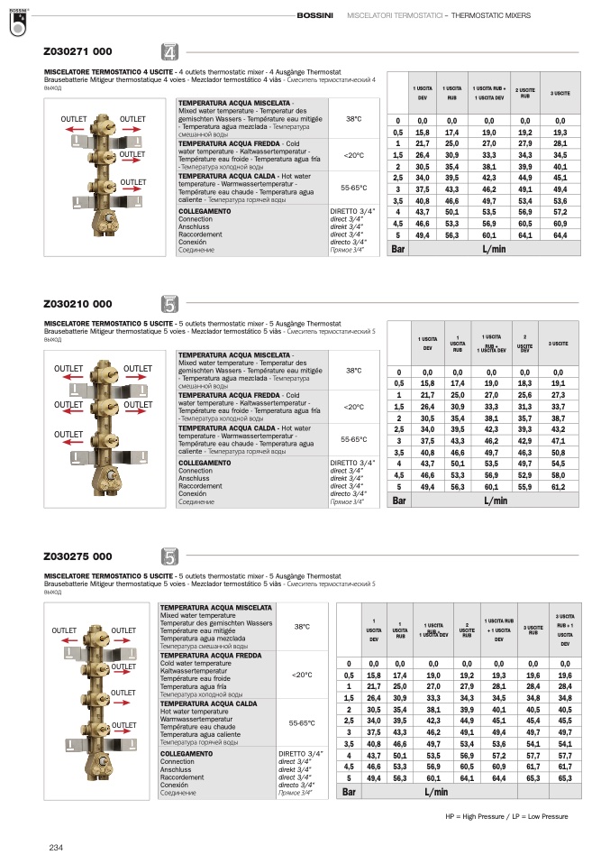 MISCELATORE TERMOSTATICO 5 USCITE - 5 outlets thermostatic mixer - 5 Ausgänge Thermostat