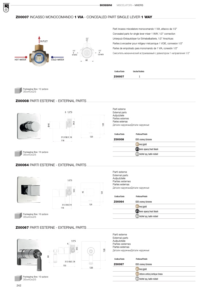 Parti incasso miscelatore monocomando 1 VIA, attacco da 1/2”