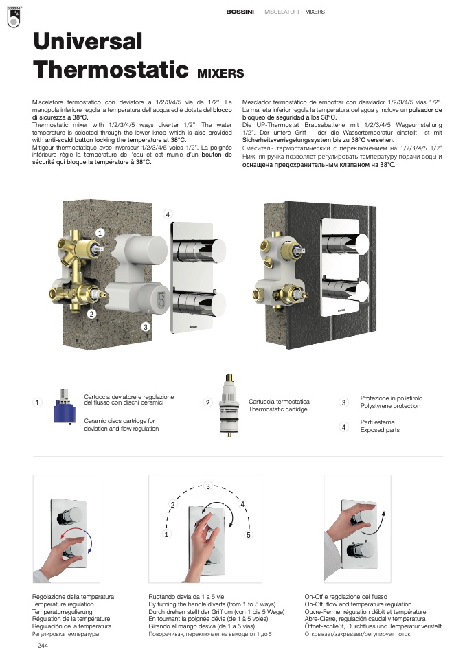 Thermostatic mixer with 1/2/3/4/5 ways diverter 1/2”. The water
