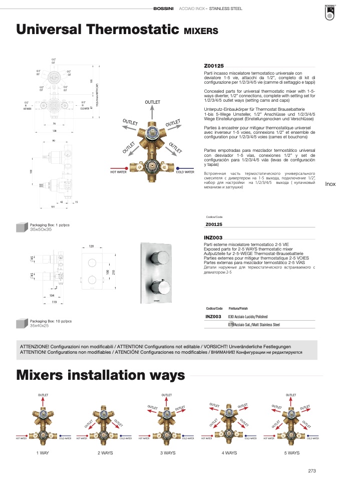 BOSSINI ACCIAIO INOX – STAINLESS STEEL