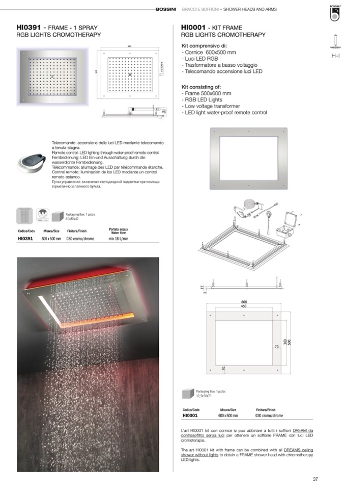shower without lights to obtain a FRAME shower head with chromotherapy