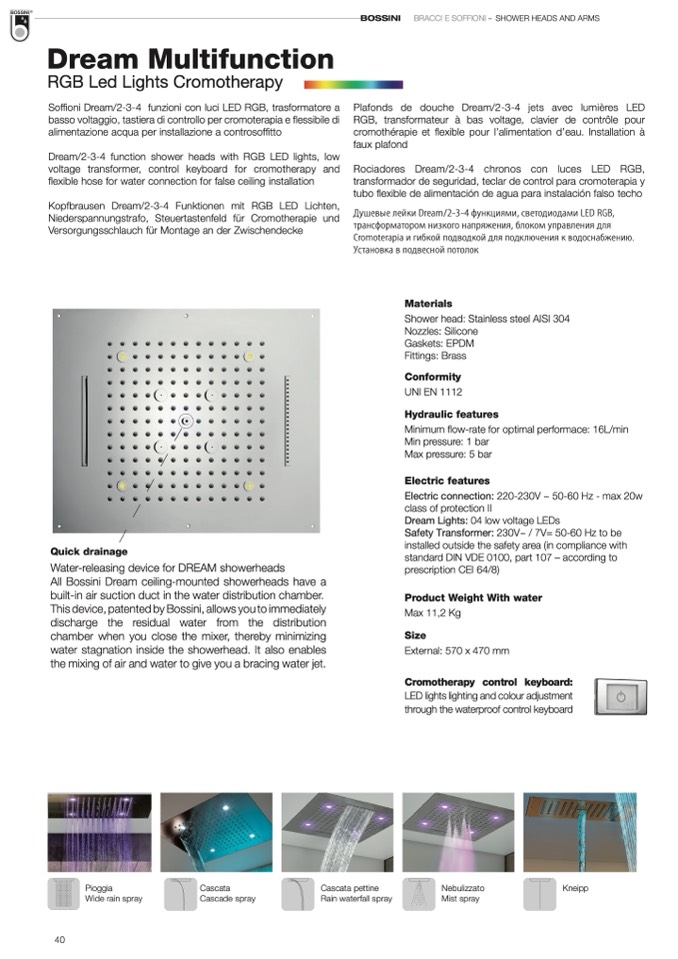 All Bossini Dream ceiling-mounted showerheads have a