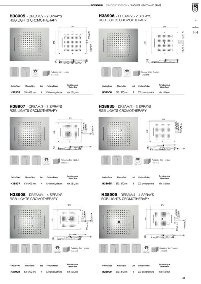 BOSSINI BRACCI E SOFFIONI – SHOWER HEADS AND ARMS