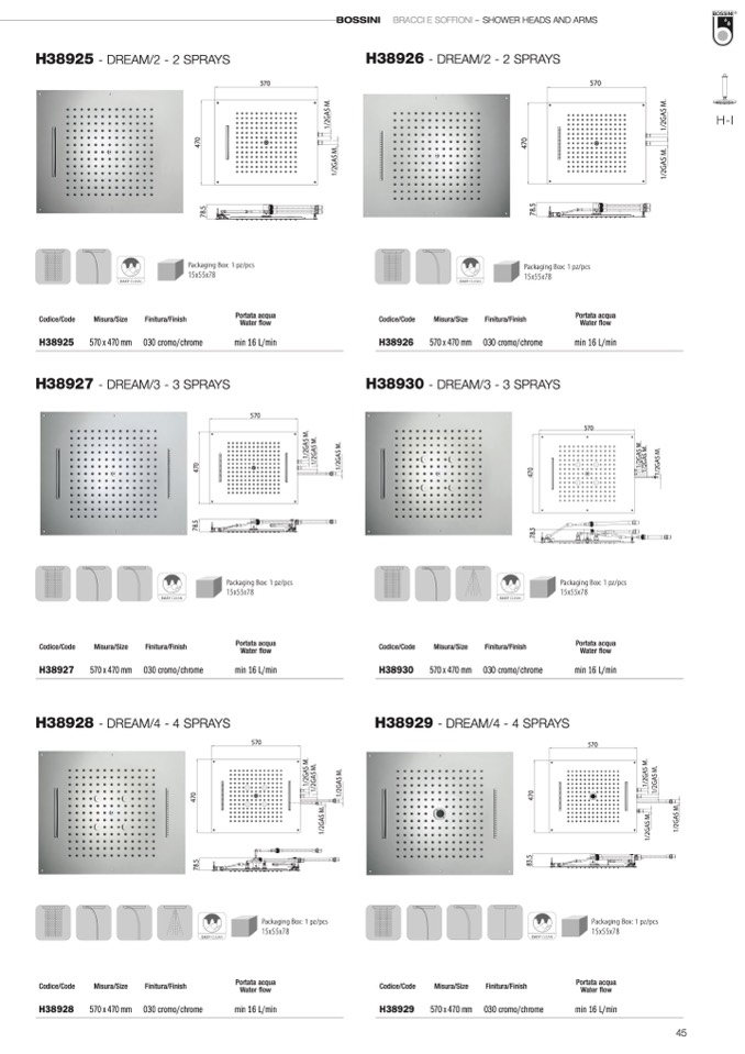 BOSSINI BRACCI E SOFFIONI – SHOWER HEADS AND ARMS