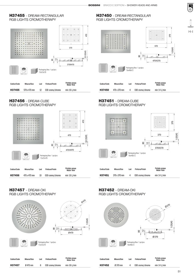 BOSSINI BRACCI E SOFFIONI – SHOWER HEADS AND ARMS